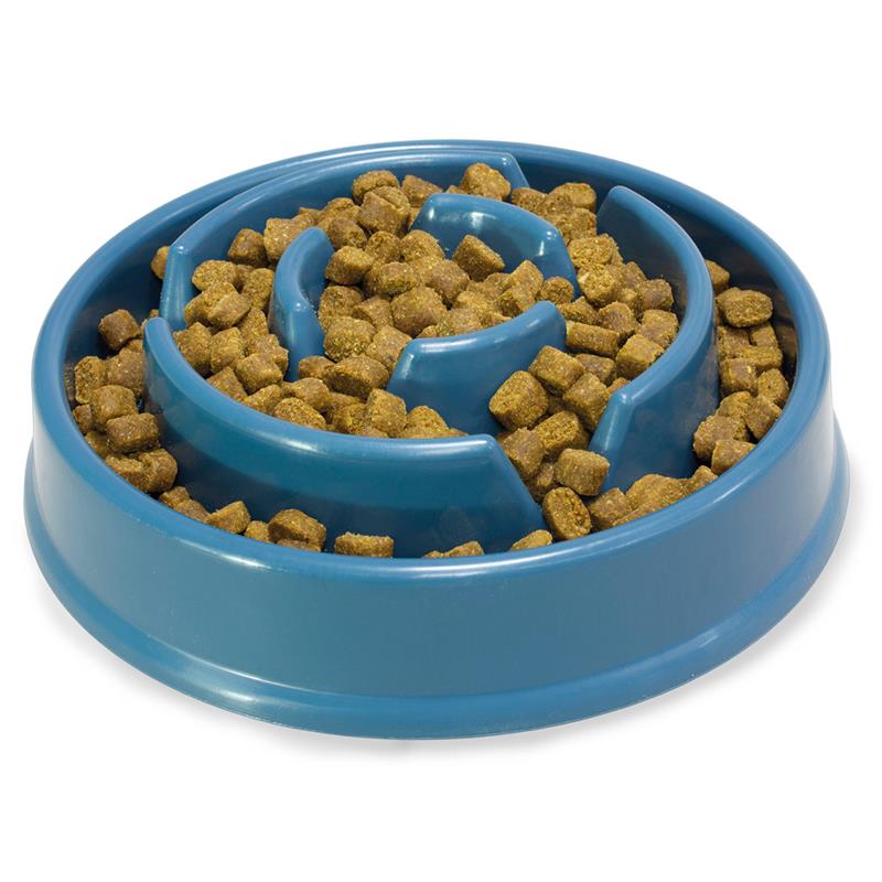 Redukcja ryzyka dławienia i wymiotów – Szybkie połykanie jedzenia może powodować dławienie, a także wymioty, gdy zwierzęta jedzą zbyt szybko i nie dokładnie przeżuwają pokarmu. Miski spowalniające zapobiegają temu poprzez wymuszenie wolniejszego jedzenia.