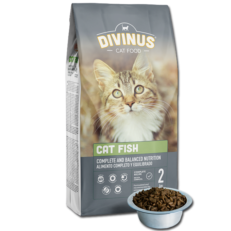 Divinus Cat Fish to pełnowartościowa sucha karma dla dorosłych kotów, opracowana z myślą o ich codziennych potrzebach żywieniowych. Wysoka zawartość mięsa oraz dodatek ryb i produktów rybnych (w tym min. 4% tuńczyka) sprawiają, że karma wyróżnia się wyjątkową smakowitością. Zbilansowana receptura wspiera zdrowie, energię i dobre samopoczucie kota.