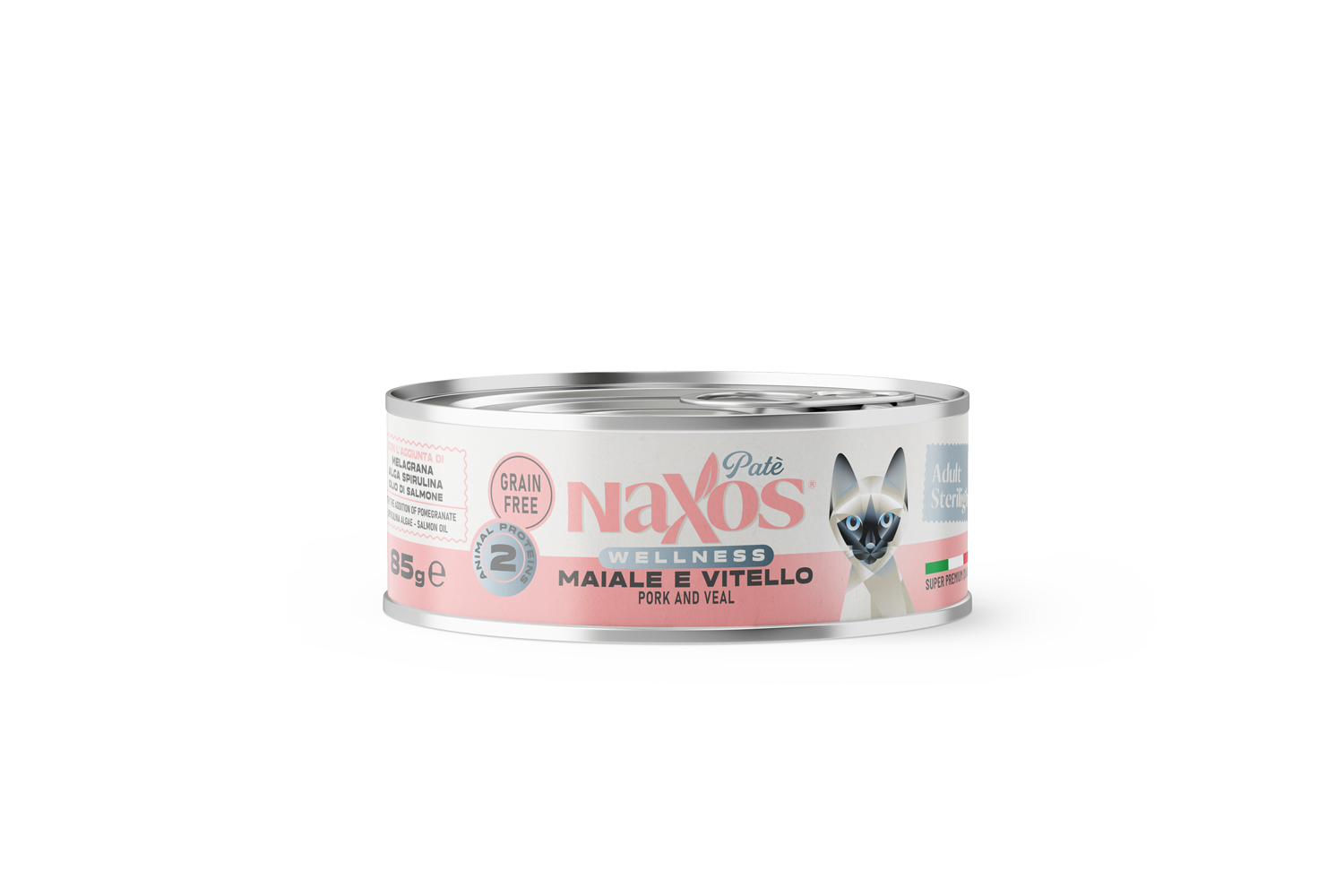 Pełnoporcjowa karma mokra dla kotów sterylizowanych o smaku wieprzowiny i cielęciny – 85 g, mus/pasztet.